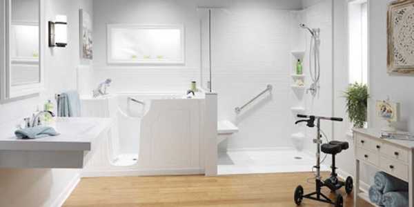 Walk-in showers with grab bars and wide doorways for safe access
